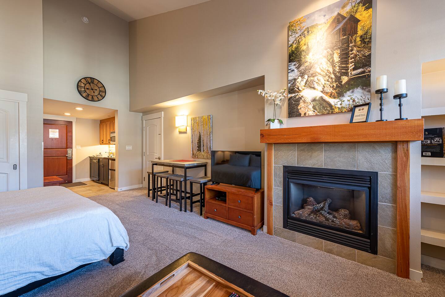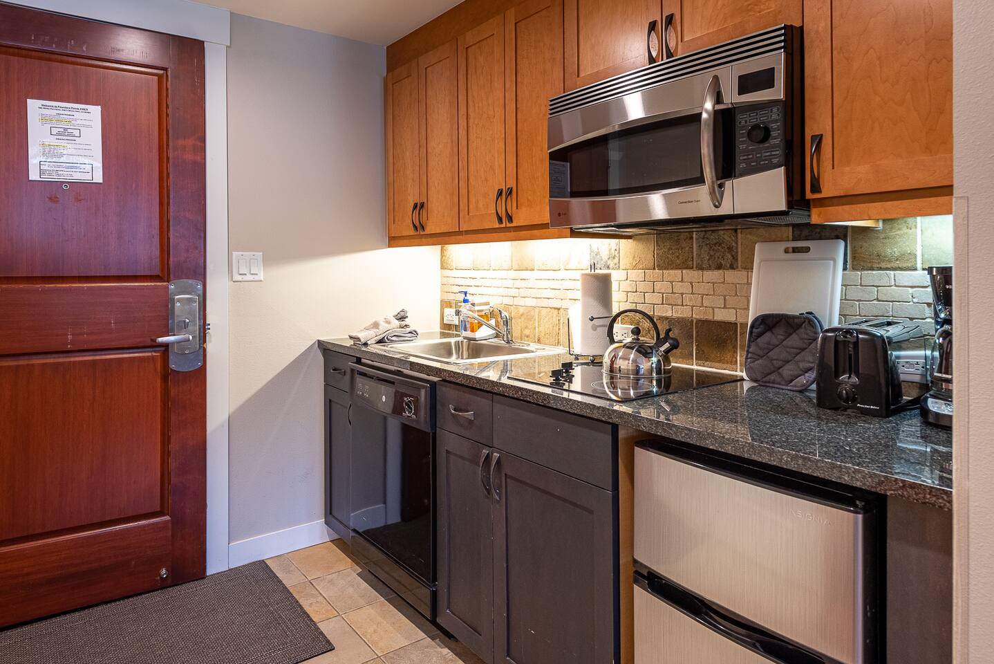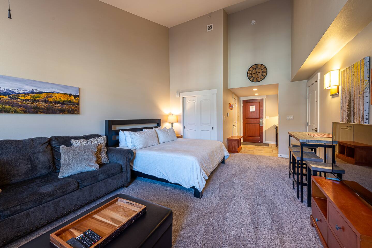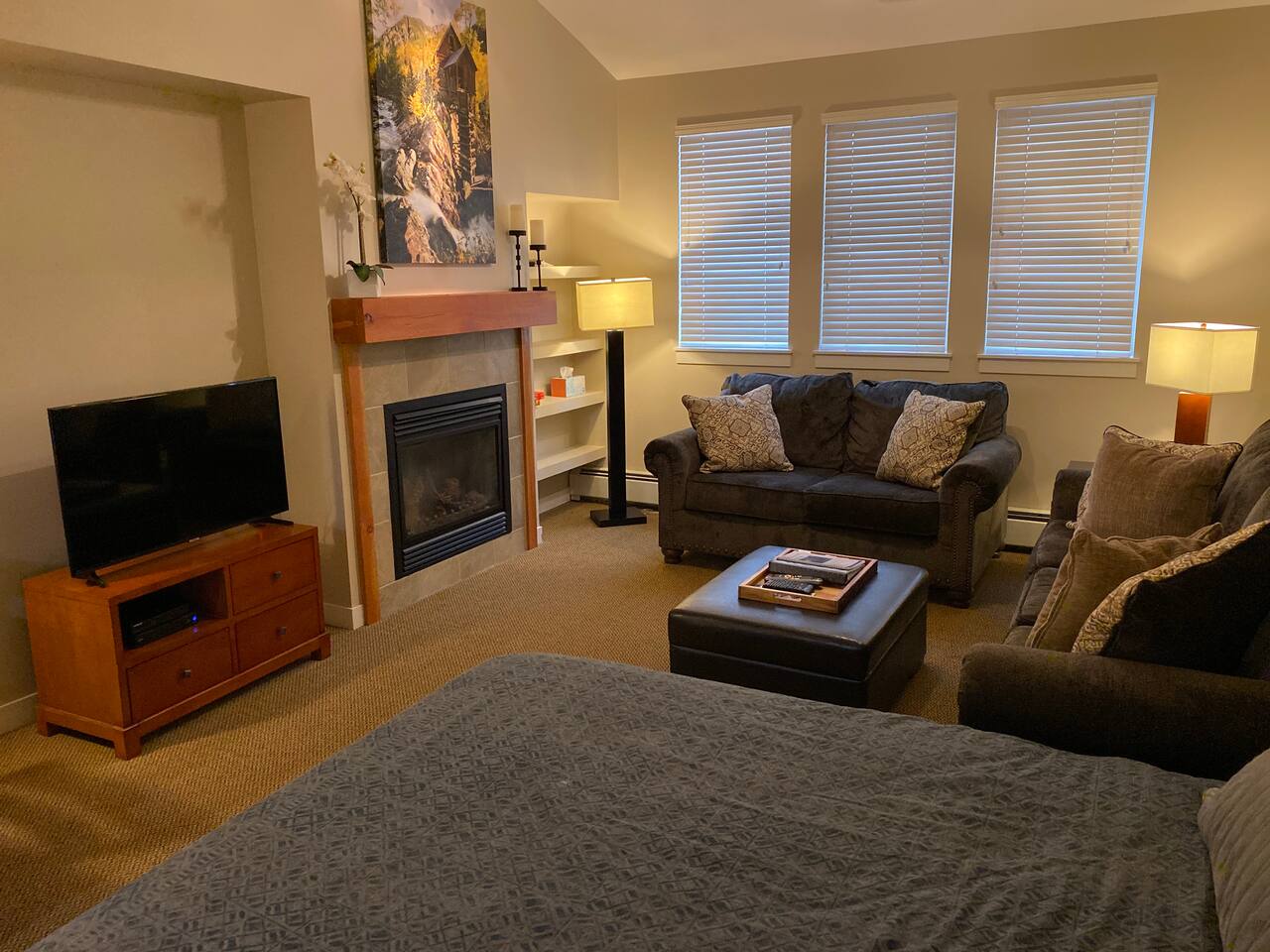 This studio unit is a newer private top floor unit with great views of the slopes and the hot tub. With a short walk to the slopes, this studio unit has everything you need! Complete with a kitchenette including a mini-refrigerator, microwave with convection oven, stove, toaster, coffee maker, dishwasher, utensils, and dishes, you can plan to fix a quiet meal away from the crowds one night or eat a quick breakfast before hitting the slopes. The studio unit is furnished with linens, toiletries, and wireless internet access. It sleeps 5 with a king bed, queen sofa sleeper, and single ottoman (suited for a child). This unit connects to a fully furnished 1 bedroom/1 bathroom unit if you are traveling with family or friends and would like to room next to each other (See https://www.airbnb.com/h/ski-in-ski-out-fcfp-1br-4673 or VRBO 646508). If you're looking for other properties, we have an additional Ski In / Ski Out unit located across the street in Zephyr Mountain Lodge (1 bedroom / Sleeps 4 - See https://www.airbnb.com/h/ski-in-ski-out-zephyr-1br-2208 or VRBO #1744346.)