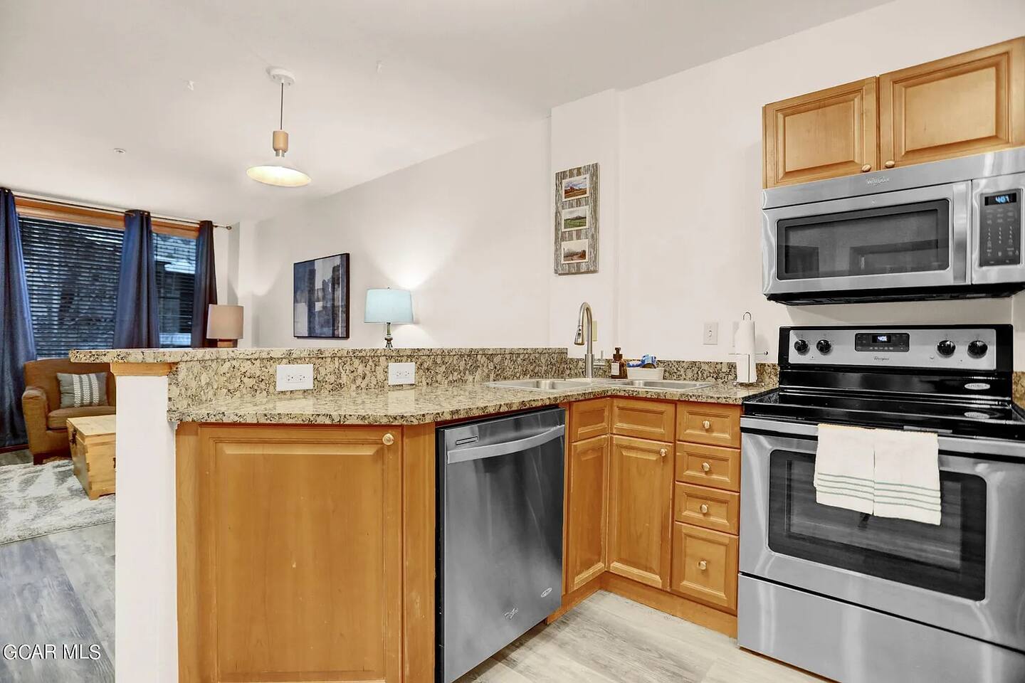 This newly remodeled luxury 1 BEDROOM/1 BATHROOM condo SLEEPS UP TO 4 PEOPLE, with enough room to spread out comfortably. The comfy and cozy living space includes a gas fireplace, 50” 4HD wall mounted home theater smart TV to stream your favorite apps including Netflix, Youtube, and Hulu, a large assortment of games/books/toys, iHome speakers to stream your music playlist, free wireless high-speed internet. An updated kitchen with granite countertops and stainless appliances is outfitted with everything a chef needs to prepare a family dinner or breakfast before hitting the slopes. The master bedroom has a KING SIZE BED (luxury mattress) flat-screen HDTV and Beautyrest Pillows. Additional sleeping accommodations; 1 QUEEN SLEEPER SOFA (very comfy -memory foam mattress.) High-quality linens make sleeping truly restful after a day of mountain play. Step outside onto a deck to listen to the river and see all the beauty that surrounds Winter Park.